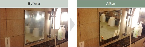 ①鏡の水垢汚れやカルキ(スケール)を洗浄して下さい。