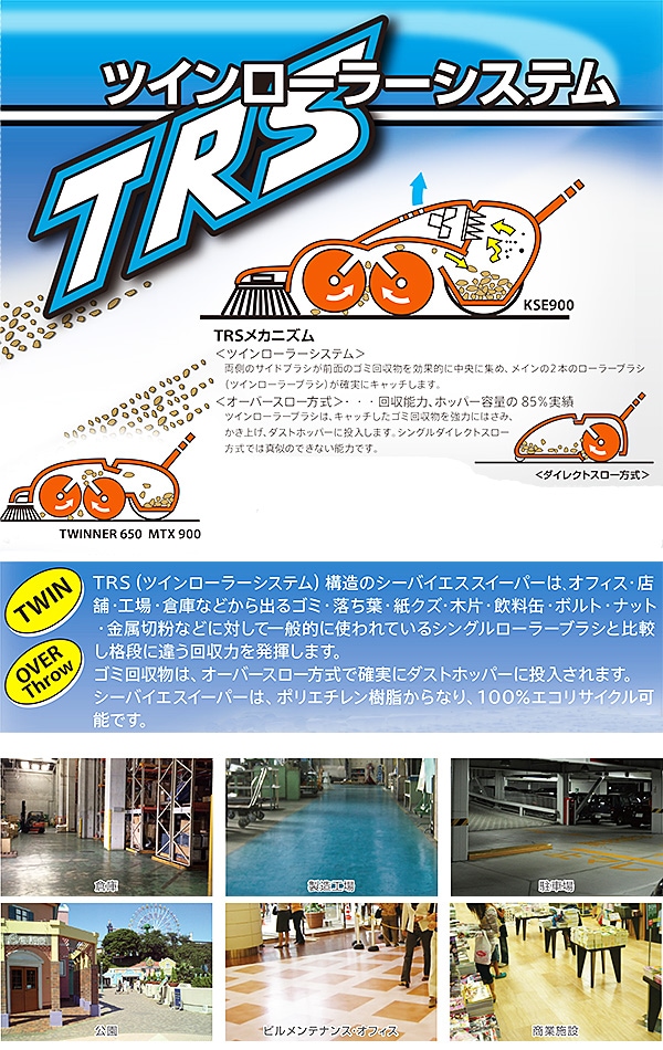 ツインローラーシステム構造のため、2本のメインブラシが優れた除塵回収力を発揮します。
