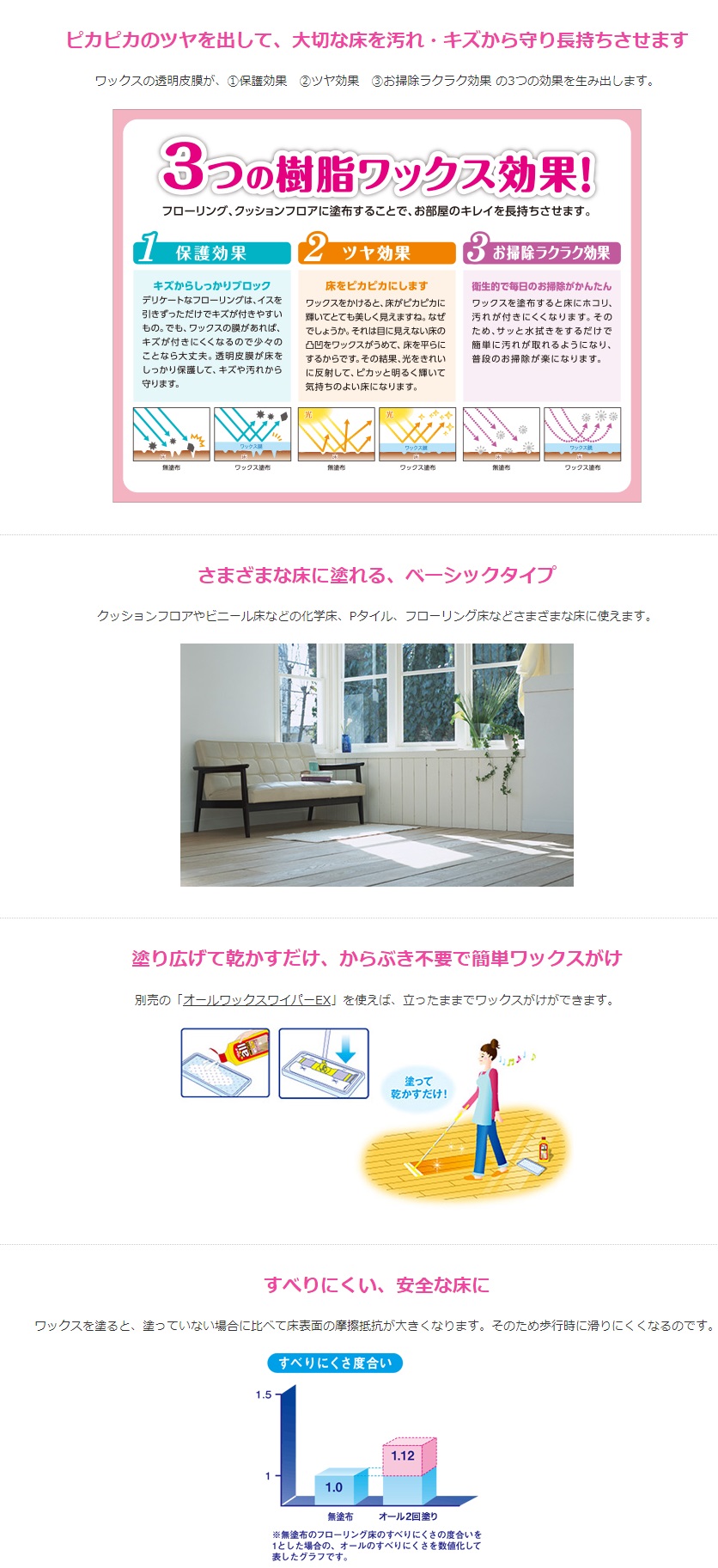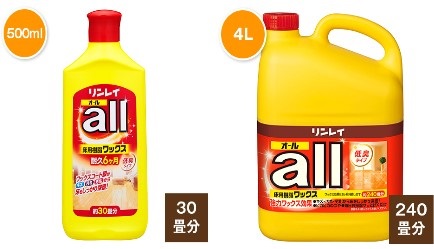 トップページ > 樹脂ワックス関連 > 樹脂ワックス普及品 > リンレイ all(オール)500ml/4L 樹脂ワックス