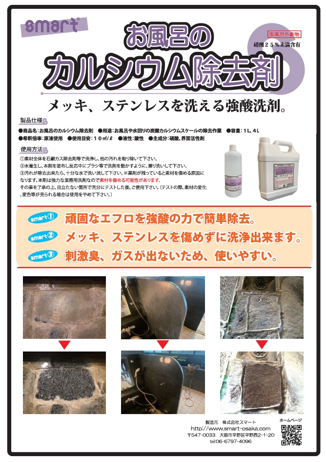 トップページ > 業務用洗剤関連 > バスクリーナー・バス洗剤用具 > 【医薬用外毒劇物】スマート お風呂のカルシウム除去剤(1L/4L)